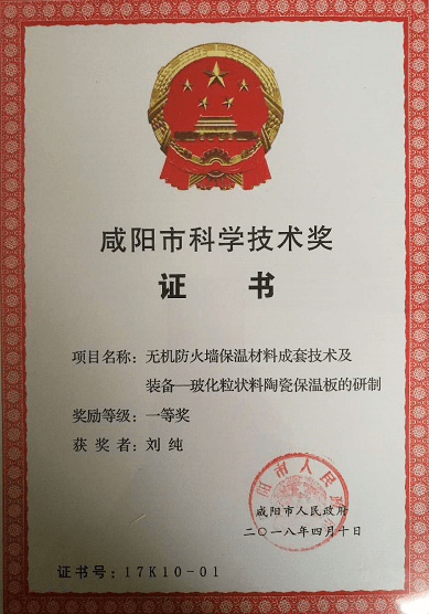 “;A咸沾杀匮b飾一體板”是“十二五”國家科技支撐計(jì)劃項(xiàng)目“新型保溫阻燃建筑材料成套技術(shù)研發(fā)與應(yīng)用示范”的科研成果之一,2016年4月17日已經(jīng)由科技部委托住房與城鄉(xiāng)建設(shè)部科技司組織了課題驗(yàn)收。該項(xiàng)目獲得陜西省2018年科學(xué)技術(shù)獎3等獎。