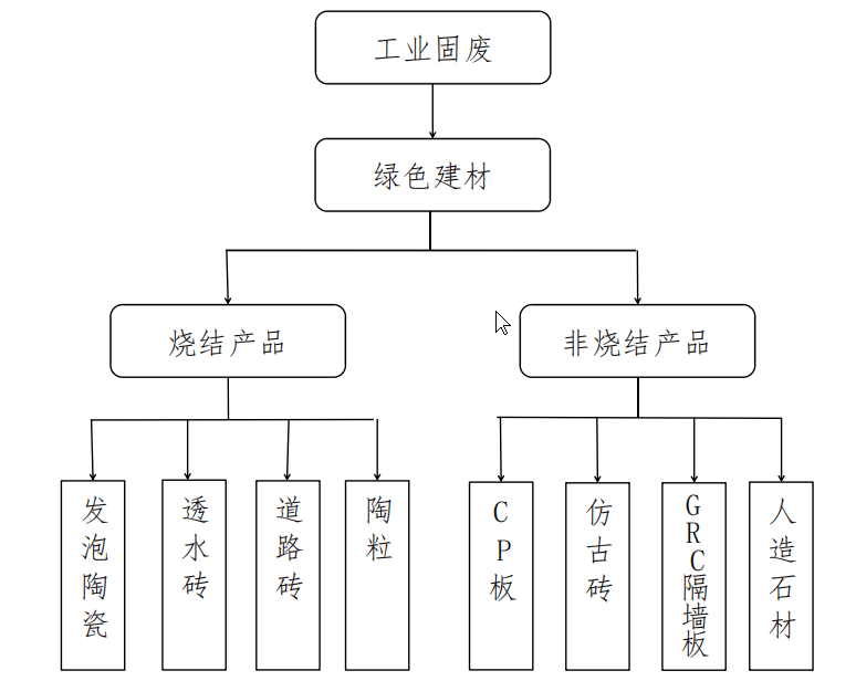 以工業(yè)固廢為主要原料,添加少量的膠凝材料或硅質(zhì)、石灰質(zhì)材料進行化學反應(yīng),高壓或常壓養(yǎng)護制得的產(chǎn)品。產(chǎn)品有蒸壓灰砂磚、粉煤灰磚、人造石材、CP 板、道沿石、仿石材磚等。