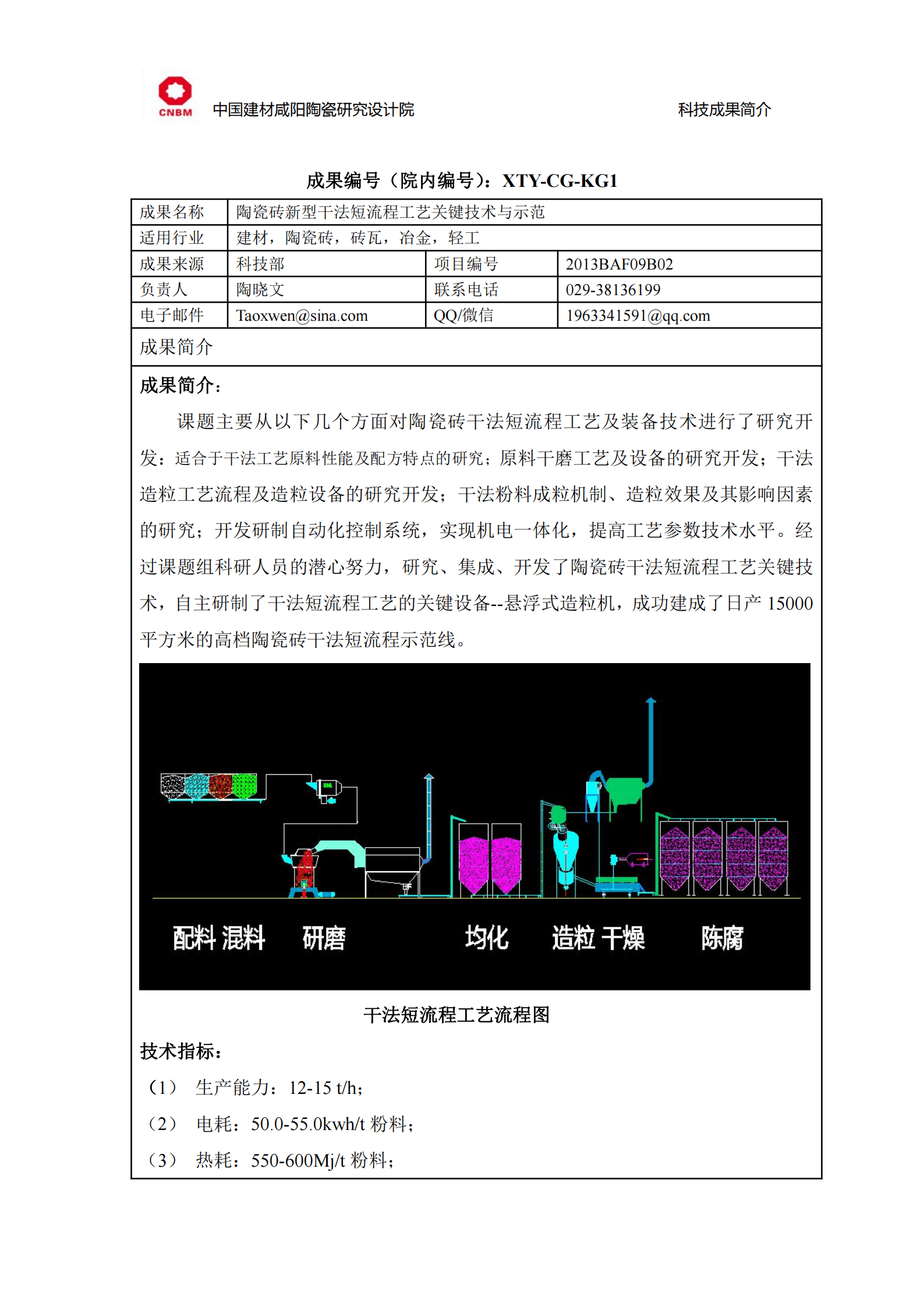 陶瓷磚新型干法短流程工藝關(guān)鍵技術(shù)與示范