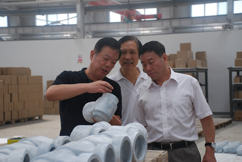 馬建國一行先后考察院進駐產(chǎn)業(yè)園的機械廠、熱工裝備部、窯具廠以及工陶廠生產(chǎn)車間,了解產(chǎn)品創(chuàng)新、生產(chǎn)、銷售情況,詢問園區(qū)規(guī)劃、建設、進展情況,對院產(chǎn)業(yè)發(fā)展所取得的成績給予充分肯定。